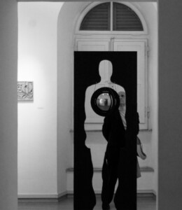 Una Sagoma umana, vuota, un buco ritagliato nella luce. Da quando si viene alla luce si ha un’ombra, riflesso del nostro spessore esistenziale, è sempre con noi, è il lato oscuro dell’esistere sinonimo di spirito. Non lascia traccia ma ci segue ovunque ossessivamente.