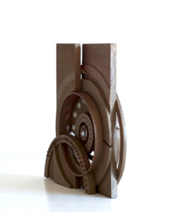 Strani e magici ingranaggi, strutture fantasiose gli “orologici” non segnano il tempo ma ipnotizzano lo sguardo e inducono la mente, troppo spesso travolta e sospesa nelle illusioni, ad una nuova visione all’interno della scatola tempo.