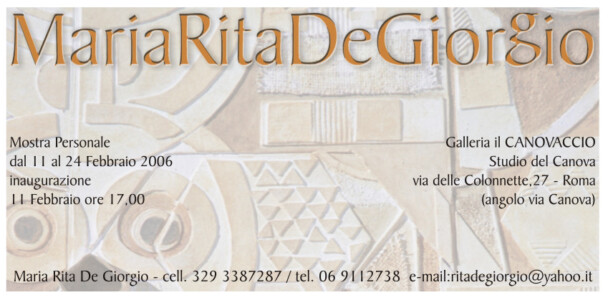 Il Centro di documentazione della ricerca artistica contemporanea Luigi Di Sarro è lieto di invitarVi alla mostra personale di :
