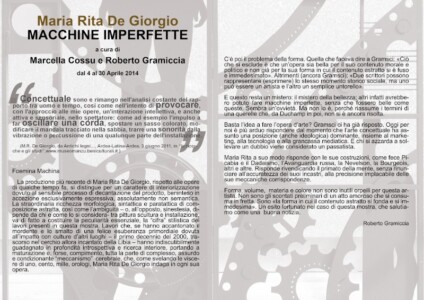 Inaugurazione venerdi 4 aprile 2014 ore 18.00. La mostra resterà aperta fino al 30 aprile dal martedì al sabato ore 16-19.